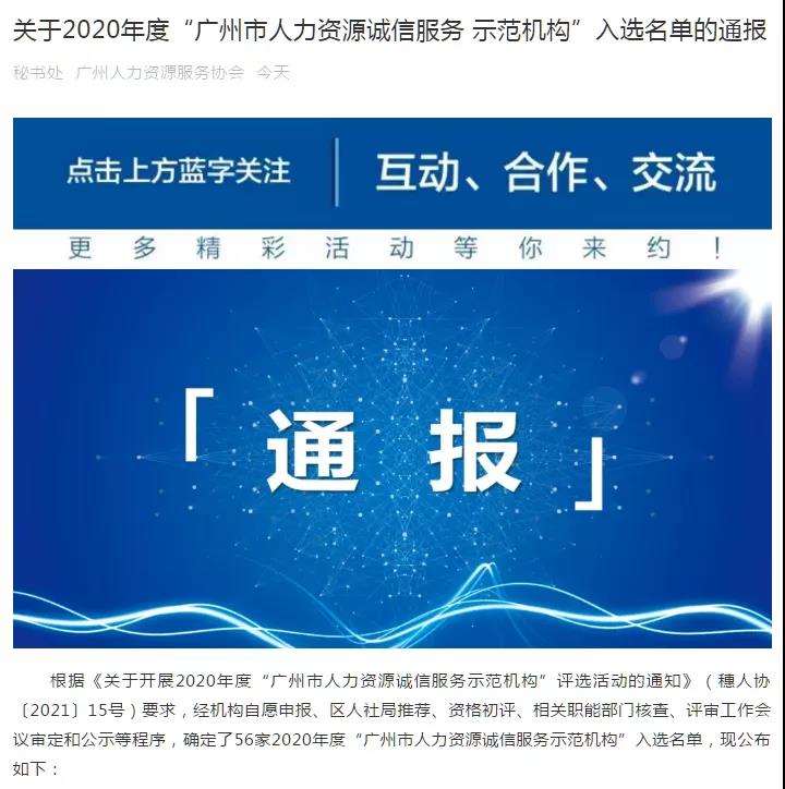 荣获“广州市科技创新小巨人企业”、“国家高新技术企业”认定、“从化2012—2013年度科学技术进步奖三等奖” 、广州市经贸系统电子商务"十强示范单位"、2016年广东省“互联网+”试点项目单位、广东省2019年人力资源服务促进就业50强机构荣誉和“2017-2020年度广州市人力资源诚信服务示范机构”认定等荣誉。